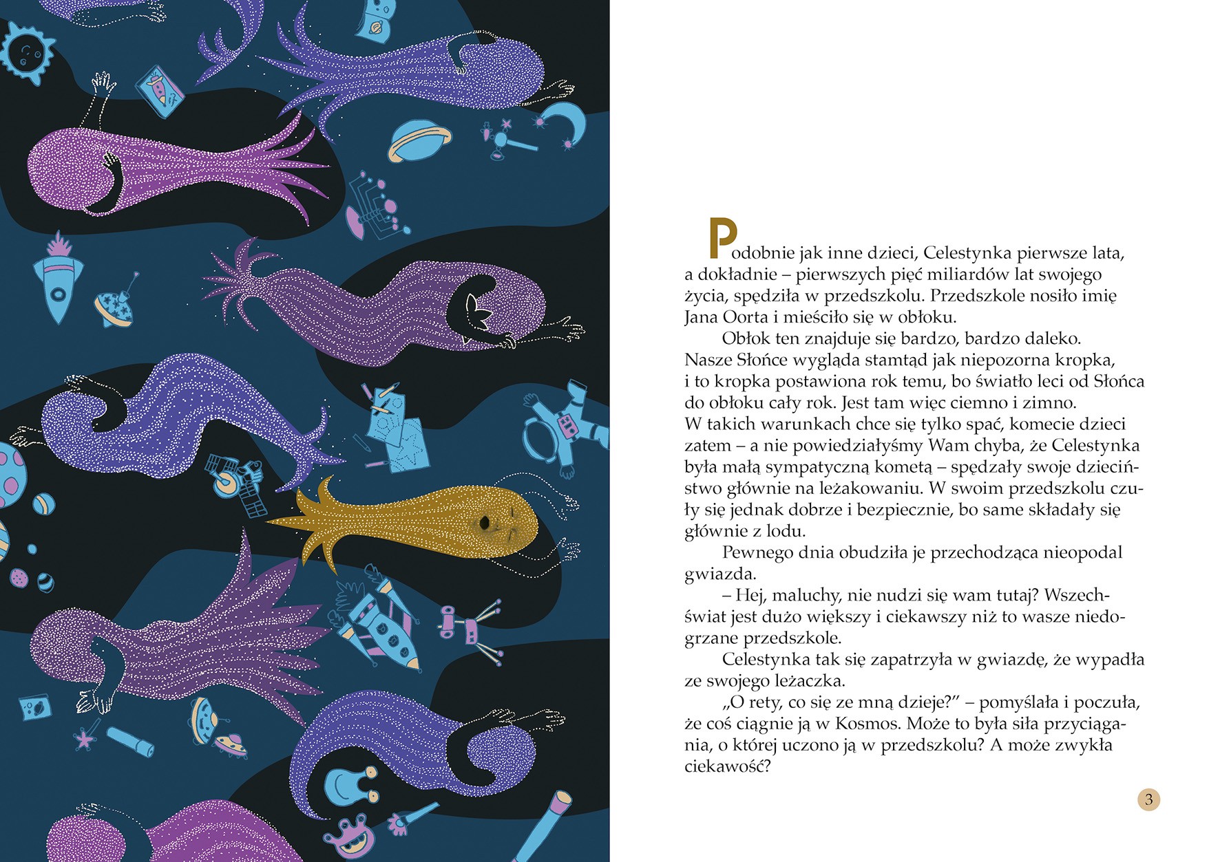 Spotkanie z Celestynką, towarzyszenie jej w podróży od gwiezdnego „przedszkola“ aż po starość to lekka, zabawna i fascynująca kosmiczna przygoda, ale również inspirująca lekcja astronomii. Rozgwieżdżone niebo już nigdy nie będzie dla Was takie samo jak przedtem.