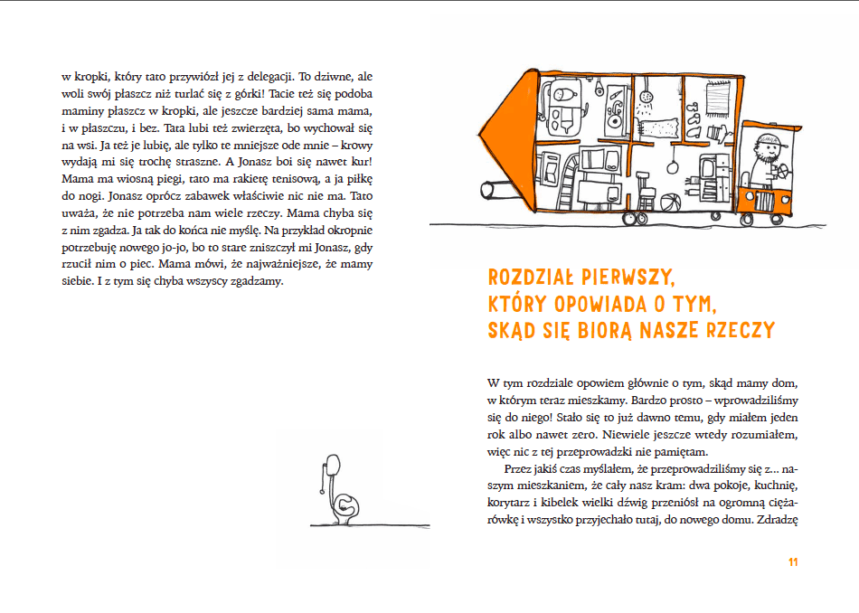 Tobiasz chodzi do przedszkola, a jego młodszy brat Jonasz jeszcze nie, więc nie zna się na wielu rzeczach – choć mama i tato mówią, że zna się po swojemu. Tobiasz lubi jeździć pociągiem, mama – autobusem, a tato – rowerem. Tato lubi wątróbkę, mama lukrecję, a Jonasz rozrzucać jedzenie dookoła. Tato lubi wszystkie zwierzęta, Tobiasz – tylko te mniejsze od niego, a Jonasz boi się nawet kury (za to nie boi się strasznych historii). Są różni, ale bardzo się kochają, dlatego w ich domu jest tak wesoło! To jest opowieść Tobiasza o tym, jak się mają różne sprawy w ich domu w Estonii.